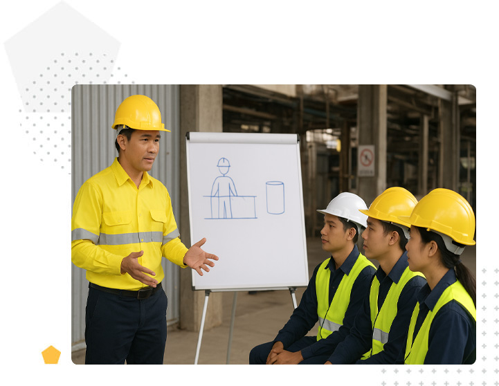 Chúng tôi mang đến giải pháp toàn diện cho doanh nghiệp trong công tác huấn luyện an toàn lao động và quan trắc môi trường lao động, kết hợp đội ngũ chuyên gia giàu kinh nghiệm với phương pháp giảng dạy thực tiễn và công nghệ đo đạc hiện đại. Mục tiêu của chúng tôi là giúp doanh nghiệp tuân thủ pháp luật, bảo vệ sức khỏe người lao động, giảm thiểu rủi ro và xây dựng môi trường làm việc an toàn – bền vững.